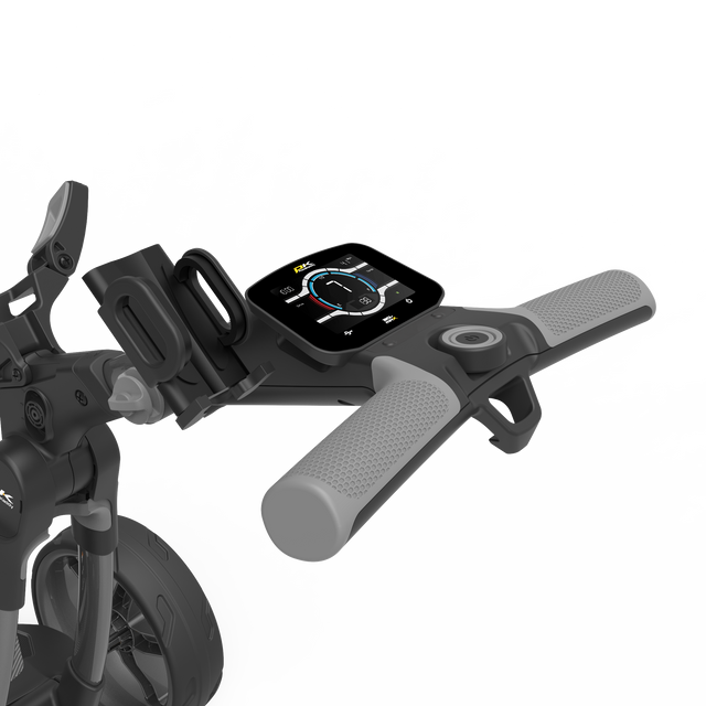 The PowaKaddy GPS and SMARTPHONE holder accommodates these devices in a prominent place on the e-trolley handle for an optimal overview.